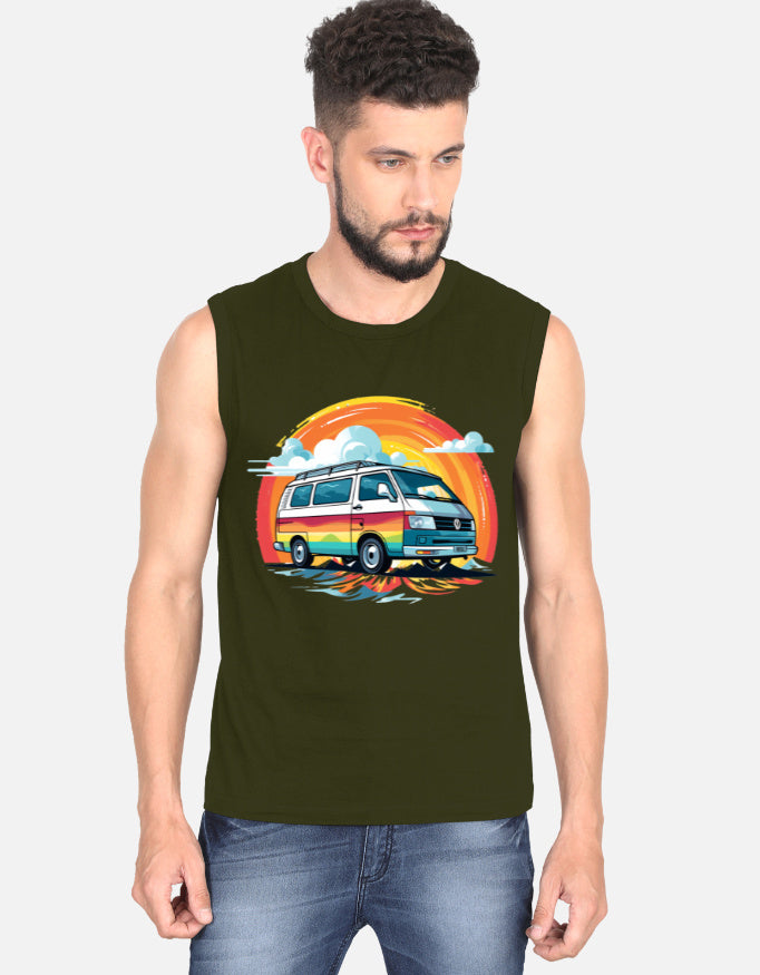 Men's Sleeveless T-Shirt Retro Van Graphic