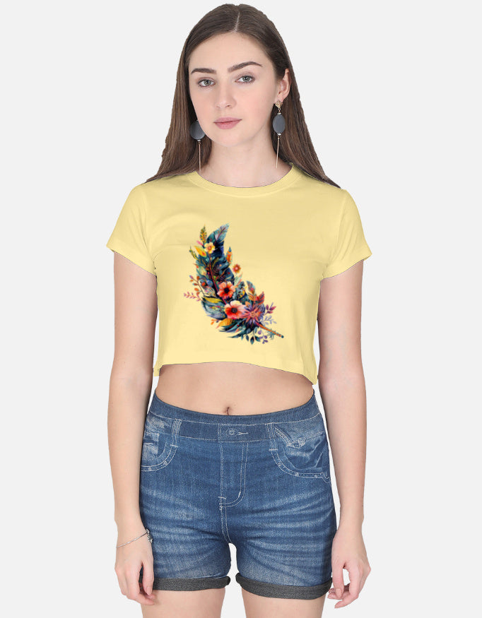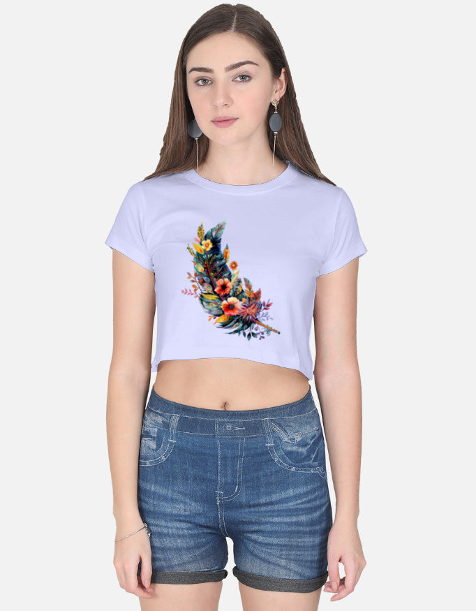 Women Crop Top Floral Leaf